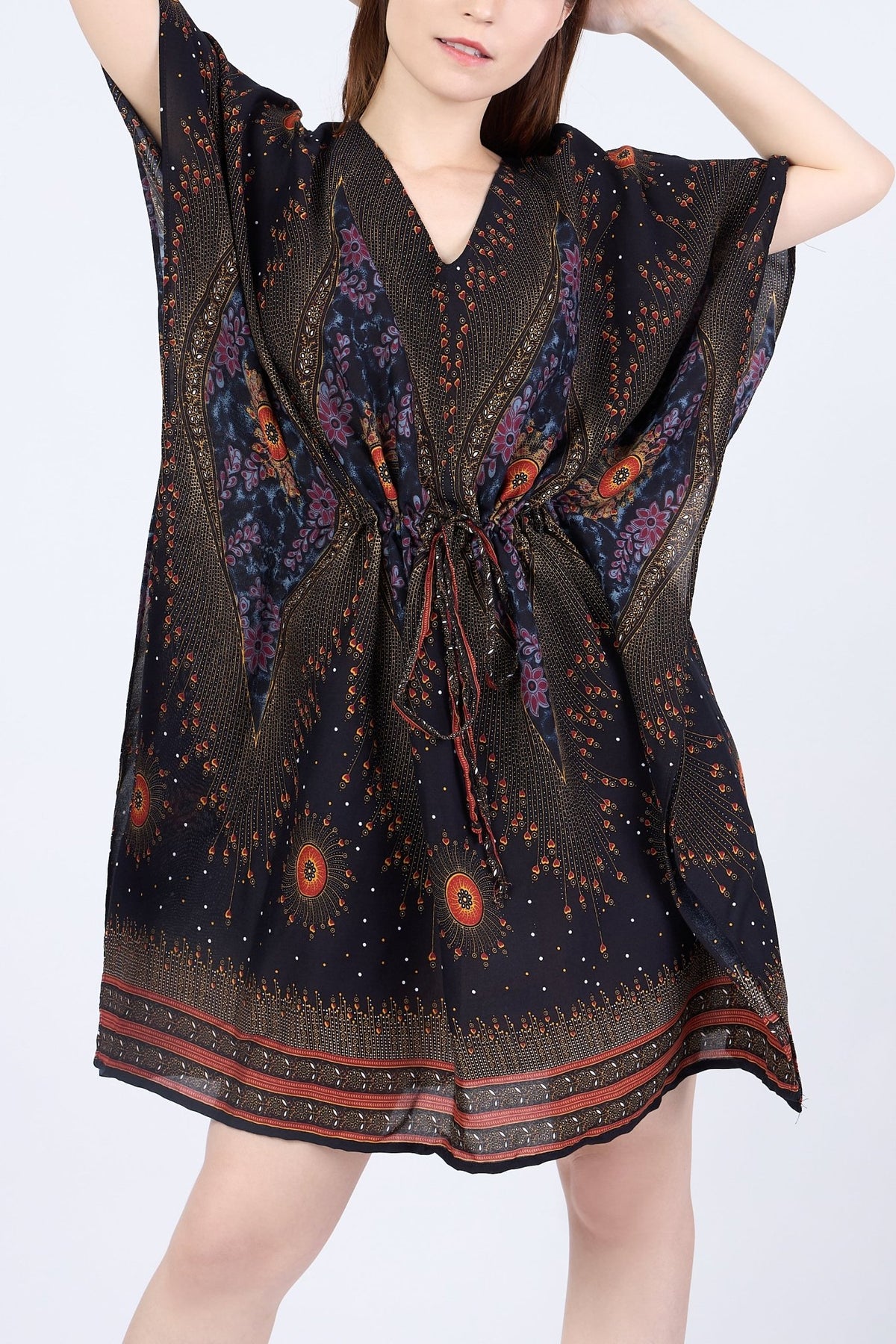 Rayon Boho Tops Dress Kimono - Black Flower Eye