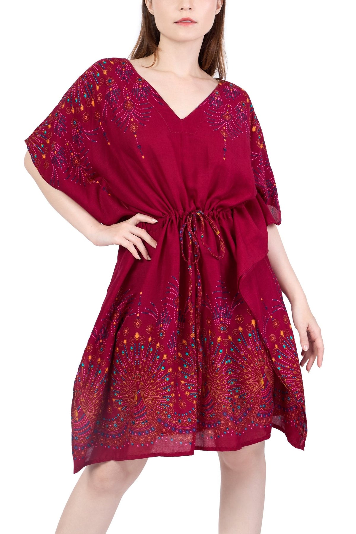 Rayon Boho Tops Dress Kimono - Burgundy Firework - Lannaclothesdesign Shop