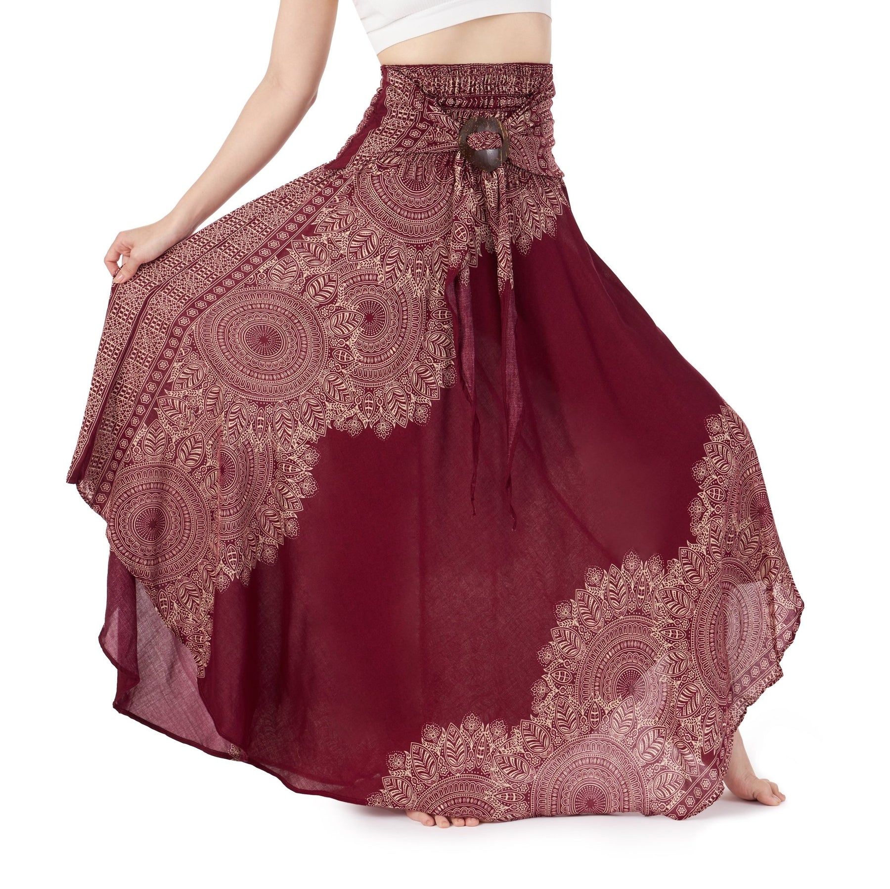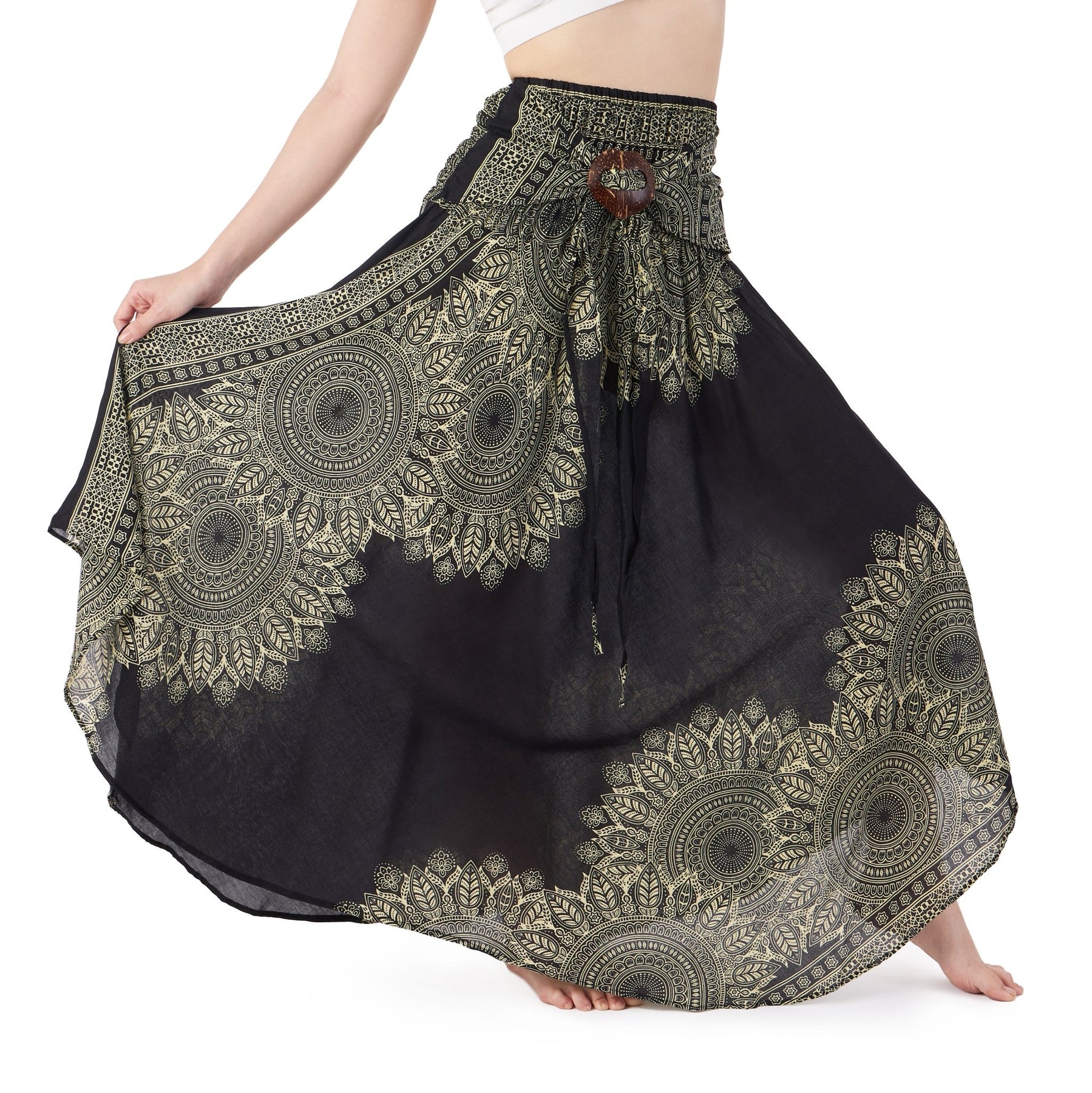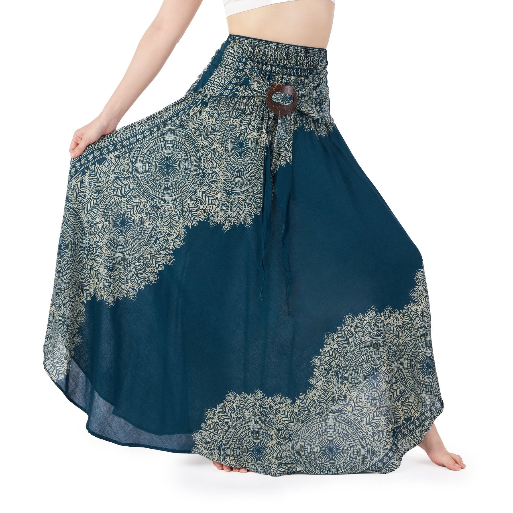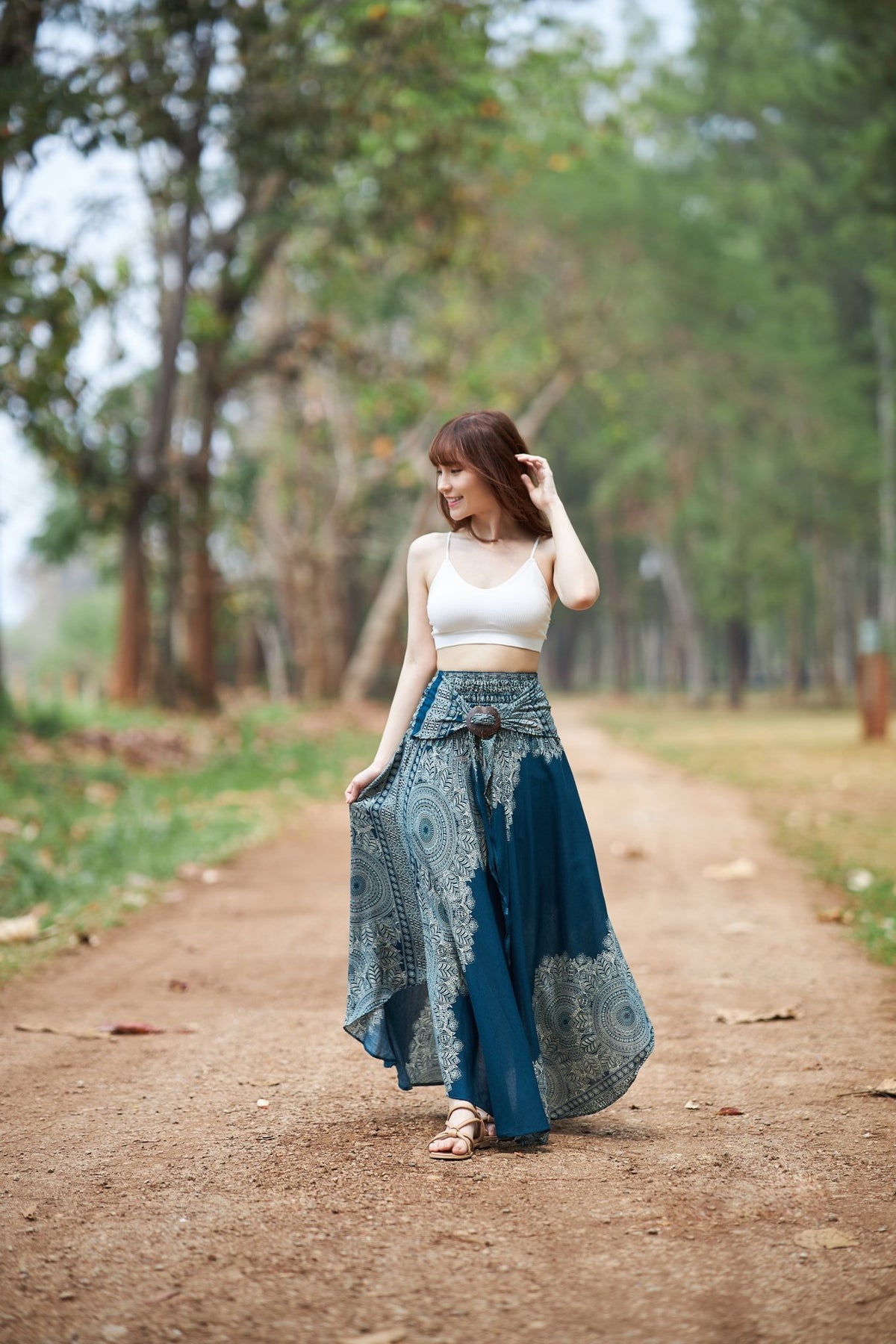 Lannaclothesdesign women's breezy long maxi skirt is handmade from wood pulp rayon and really comfortable to wear. Bohemian skirt have elastic smoked waist with coconut belt. This hippie girl dress is great option for outdoor and indoor clothing, festival wear, dance, summer, beach or just casual day in home. Elephant printed fabric is colorful and nice design.